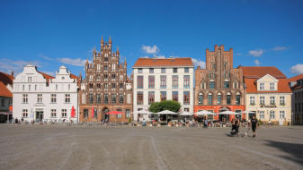 - Historisches Altstadtzentrum (besonders reizvoll ist der in Norddeutschland einzigartige Marktplatz)- Greifswalder Rathaus- Ernst-Moritz-Arndt Universität- Pommersches Landesmuseum- Dom St. Nikolai (erbaut um 1263, das Wahrzeichen der Stadt)- St. Marien – im Volksmund Dicke Marie genannt (um 1260, älteste der drei großen Stadtkirchen)- St. Jakobi (1280, kleinste der drei gotischen Hauptkirchen)- Greifswalder Theaterhaus