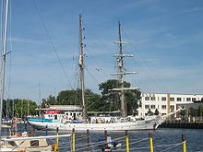 Fischerdorf Wieck und Eldena- Historische Klappbrücke Wieck- Klosterruine Eldena- Strand mit Strandbad von Eldena- Segelschulschiff Greif
